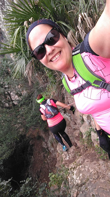 Íbamos a disfrutar ,sin prisas ,senderísmo ,fotos para el recuerdo,sobre todo porque los paísajes ahí arriba son espectaculares.Empezamos a subir a la montaña de Carles ,es la primera vez que me voy sola y haciendo yo de guía,terreno muy bueno y bien señalizado ,todavía se podían apreciar las pisadas del día de la carrera,el tiempo parecía respetarnos.